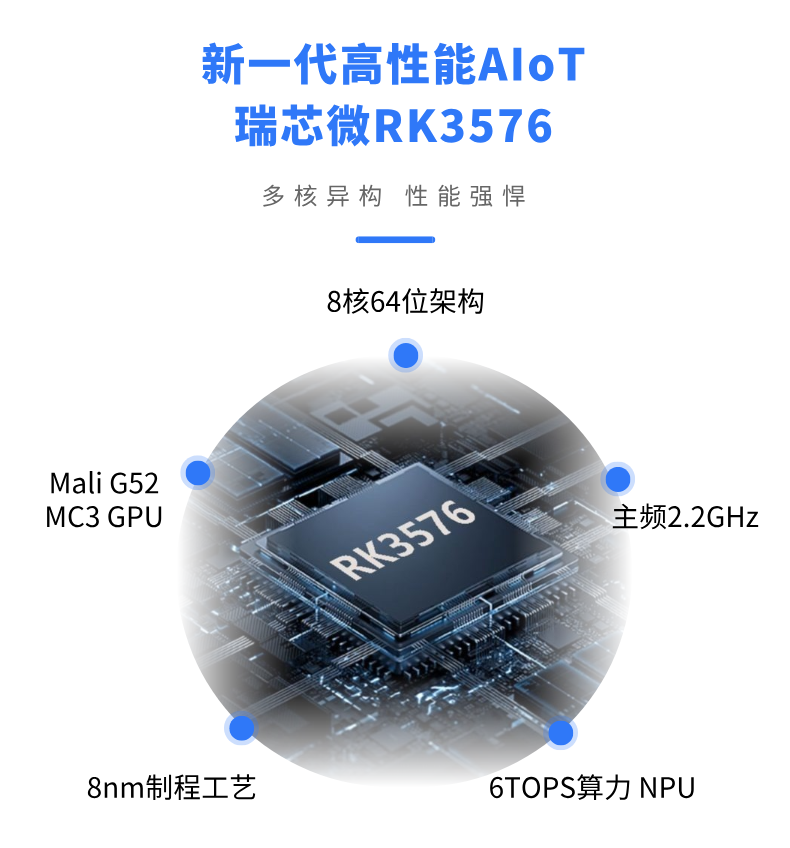 | 处理器 | CPU | RK3576,4*Cortex-A72@2.2GHz + 4*Cortex-A53@1.8GHz |